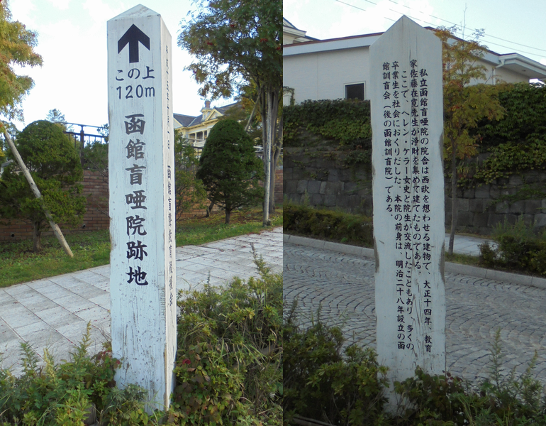 その場所から、先ほど「函館盲唖院」と見かけた場所まで、徒歩で5分もかかりません。